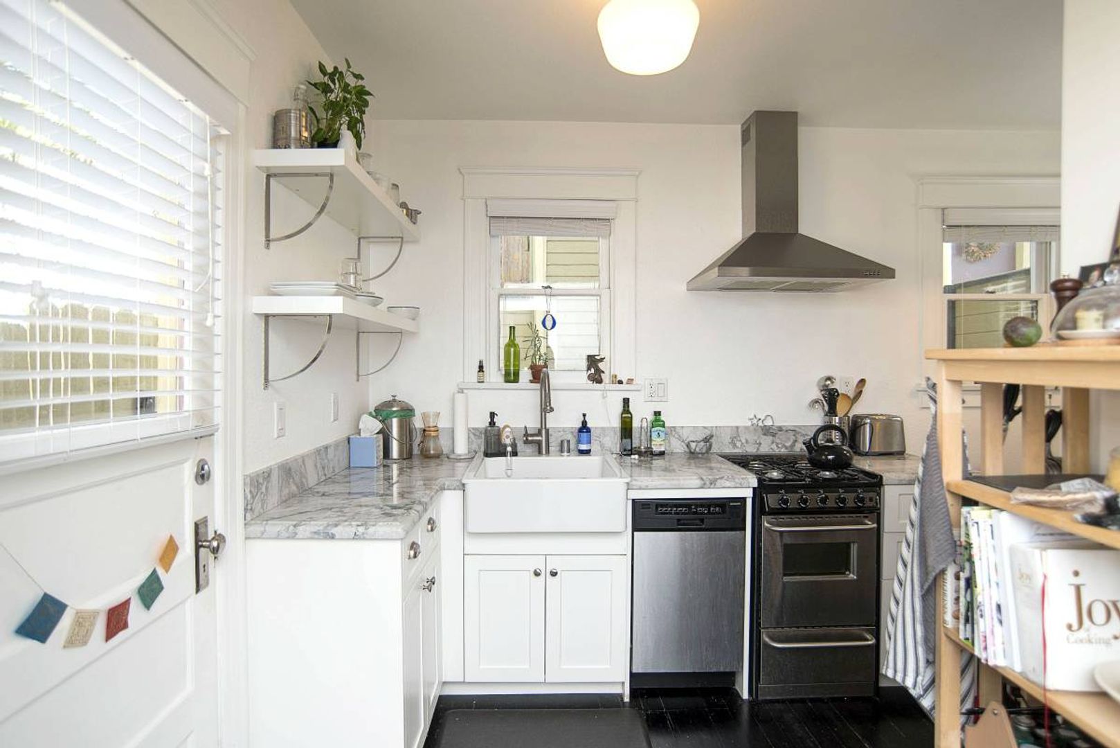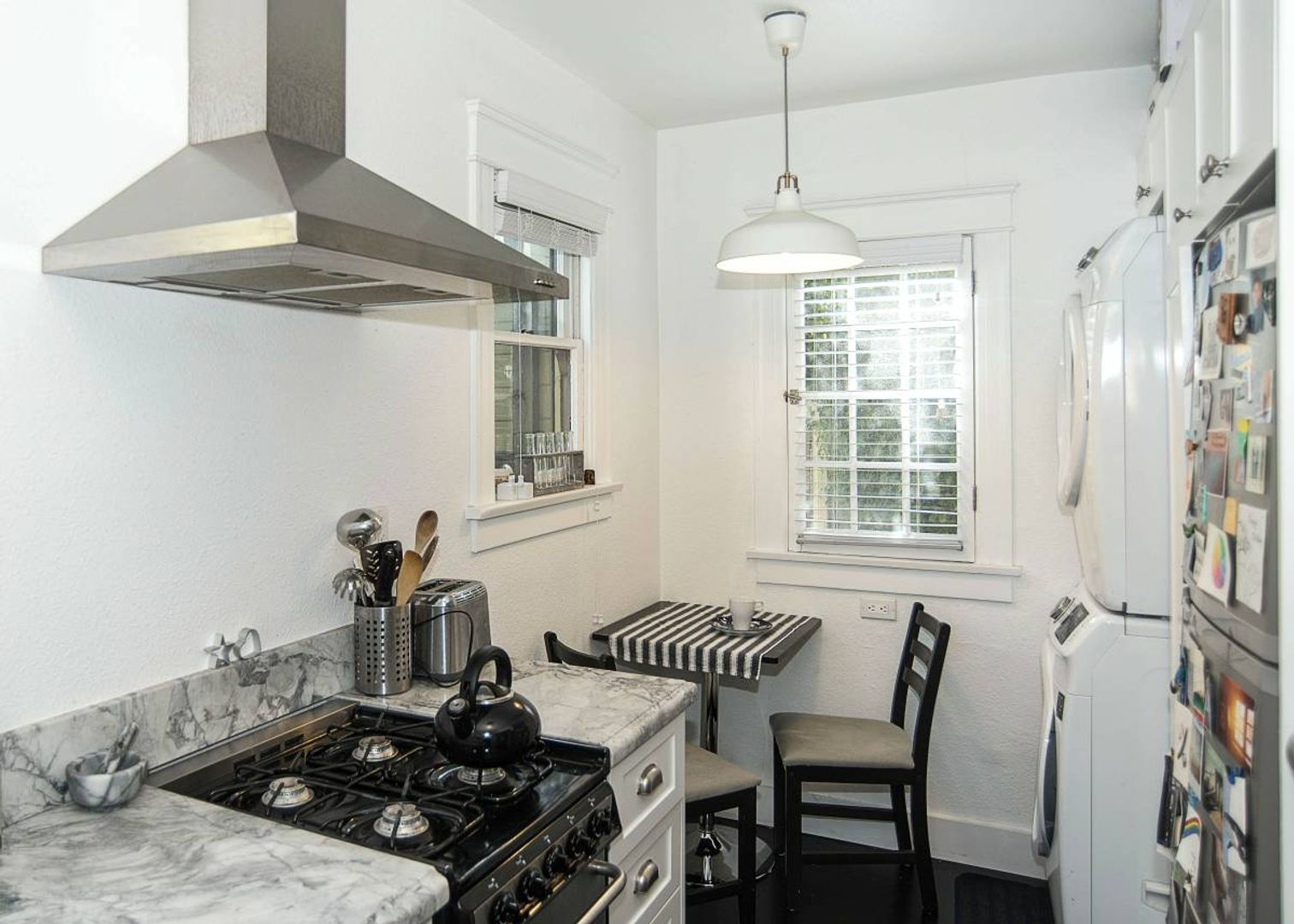 This beautifully designed one-bedroom, bungalow-style apartment is located in the heart of prime Echo Park and offers every amenity needed for comfortable living. The home features real hardwood flooring, Italian marble countertops, a farmhouse-style kitchen sink, and stainless-steel appliances, including a range/oven, refrigerator, and dishwasher. Additional highlights include overhead A/C and heat in the living room, an in-unit washer and dryer, and one included parking space in a private parking lot.