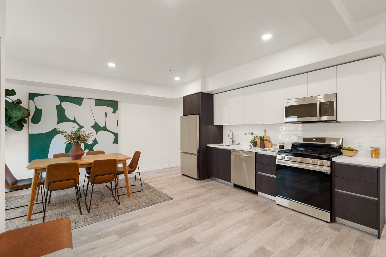 Each residence features in-unit laundry, A/C, dishwasher, modern fixtures, and a sleek, contemporary design. Energy-efficient windows and lighting complement the clean, open interiors, while secure electronic entry adds convenience and peace of mind.