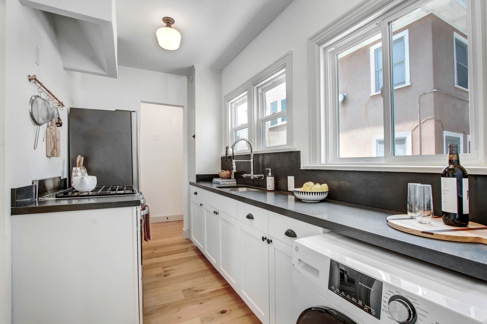 This 1 bed, 1 bath apartment in a peaceful courtyard style complex is now available! This property has been remodeled with impeccable attention to detail and design. This 500 square foot home features beautiful hardwood flooring throughout, composite granite countertops, stainless steel appliances including a range/oven and refrigerator, air conditioning, heating, brand new energy efficient windows and a combination washer/dryer in the unit!