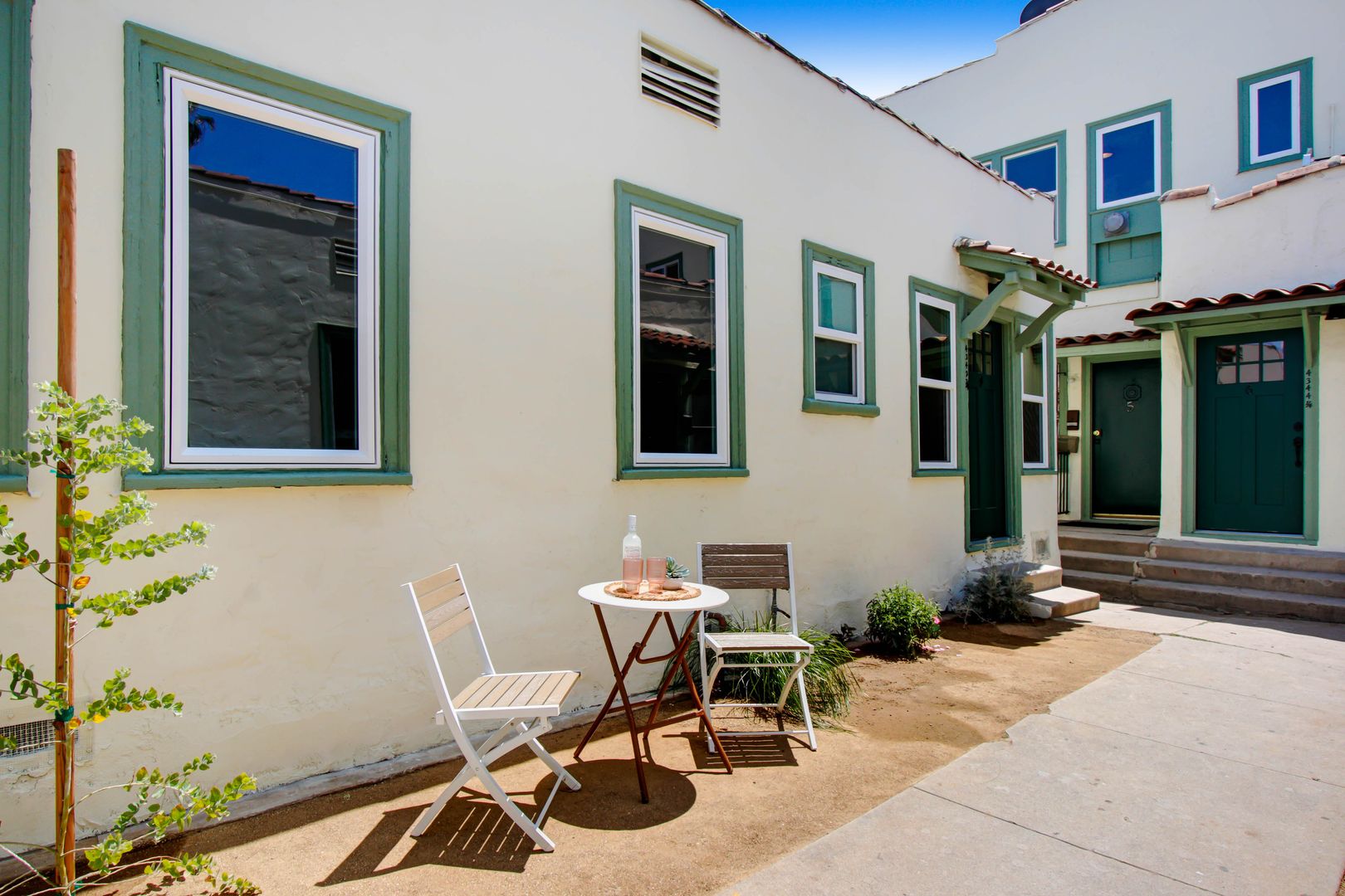 The peaceful and quiet gated courtyard features new drought tolerant landscaping and beautiful flowering plants and trees. The Spanish adobe style design of the property compliments the aesthetic nature of this complex and welcomes its residents home to a serene and relaxing atmosphere.