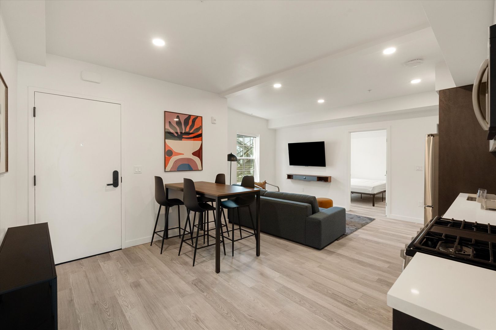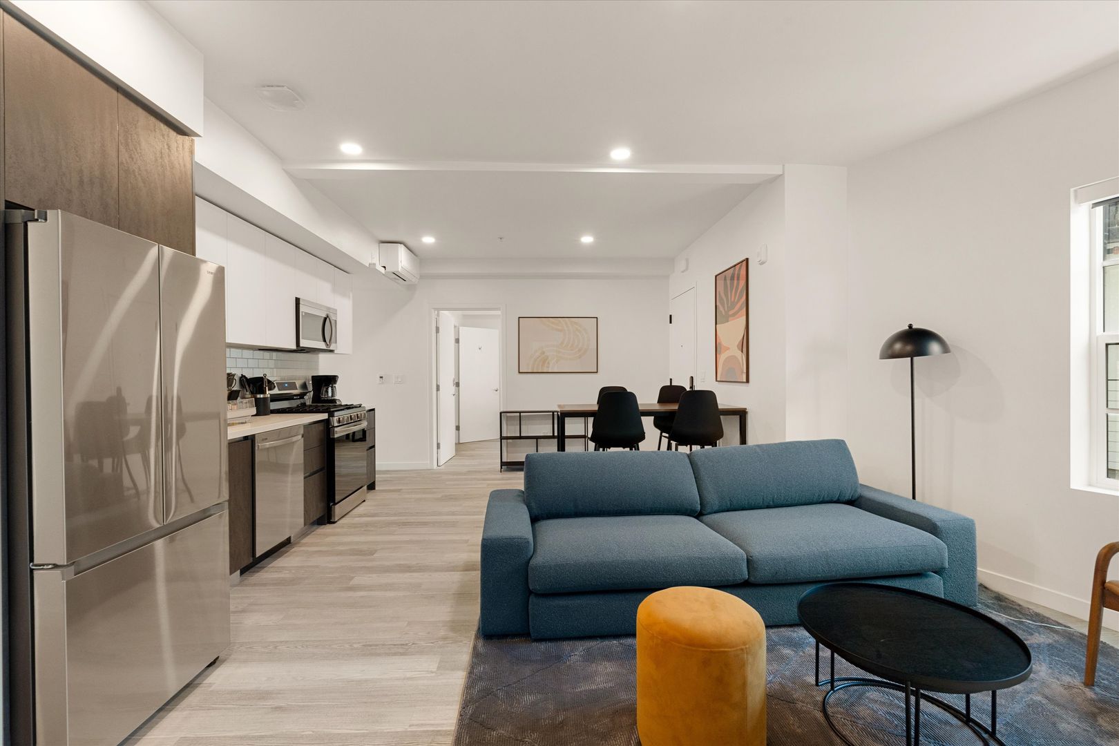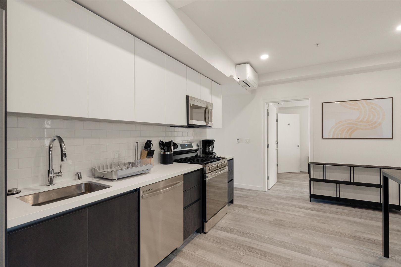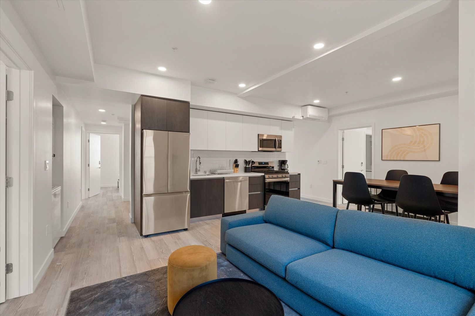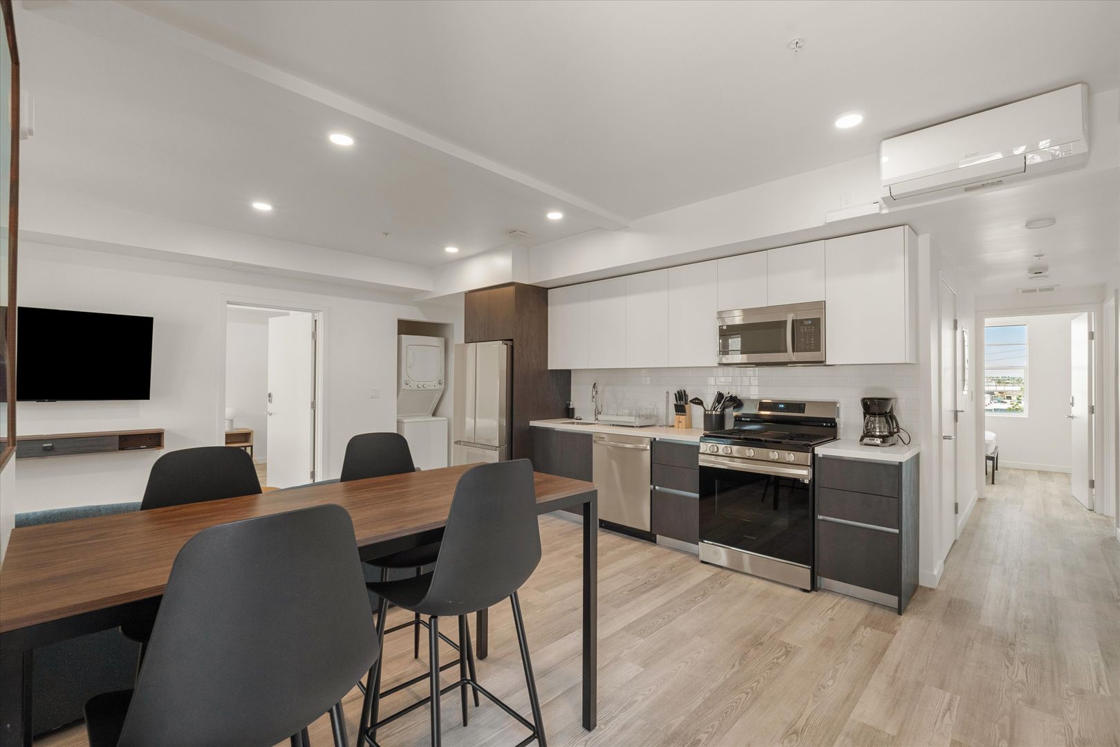 Each residence features in-unit laundry, A/C, dishwasher, modern fixtures, and a sleek, contemporary design. Energy-efficient windows and lighting complement the clean, open interiors, while secure electronic entry adds convenience and peace of mind.