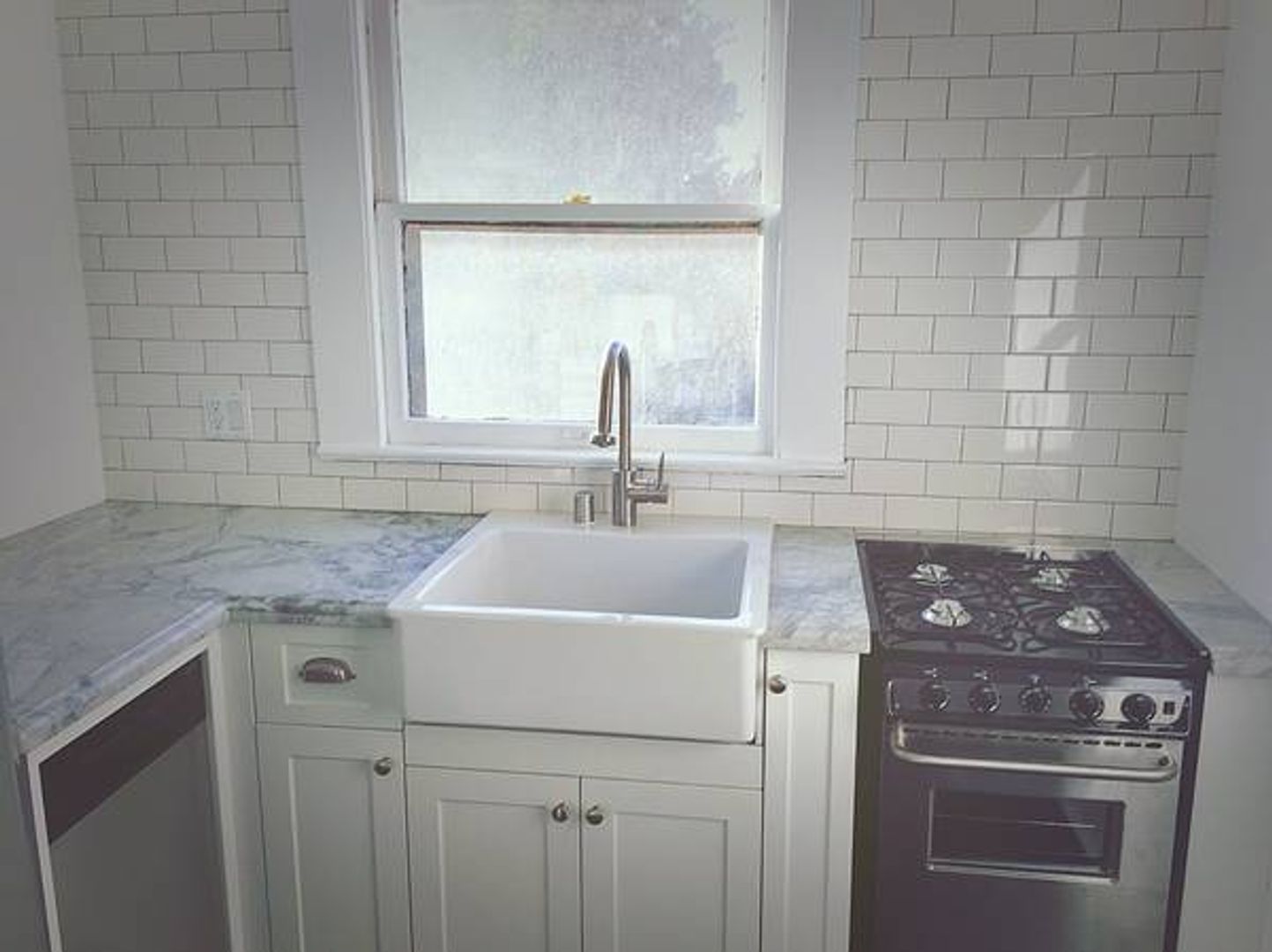 In the kitchen, enjoy stainless steel appliances, a custom narrow range perfect for weekend cooking, a full-size fridge, a small dishwasher, great counter space, and nine-foot ceilings that make the room feel open and inviting.