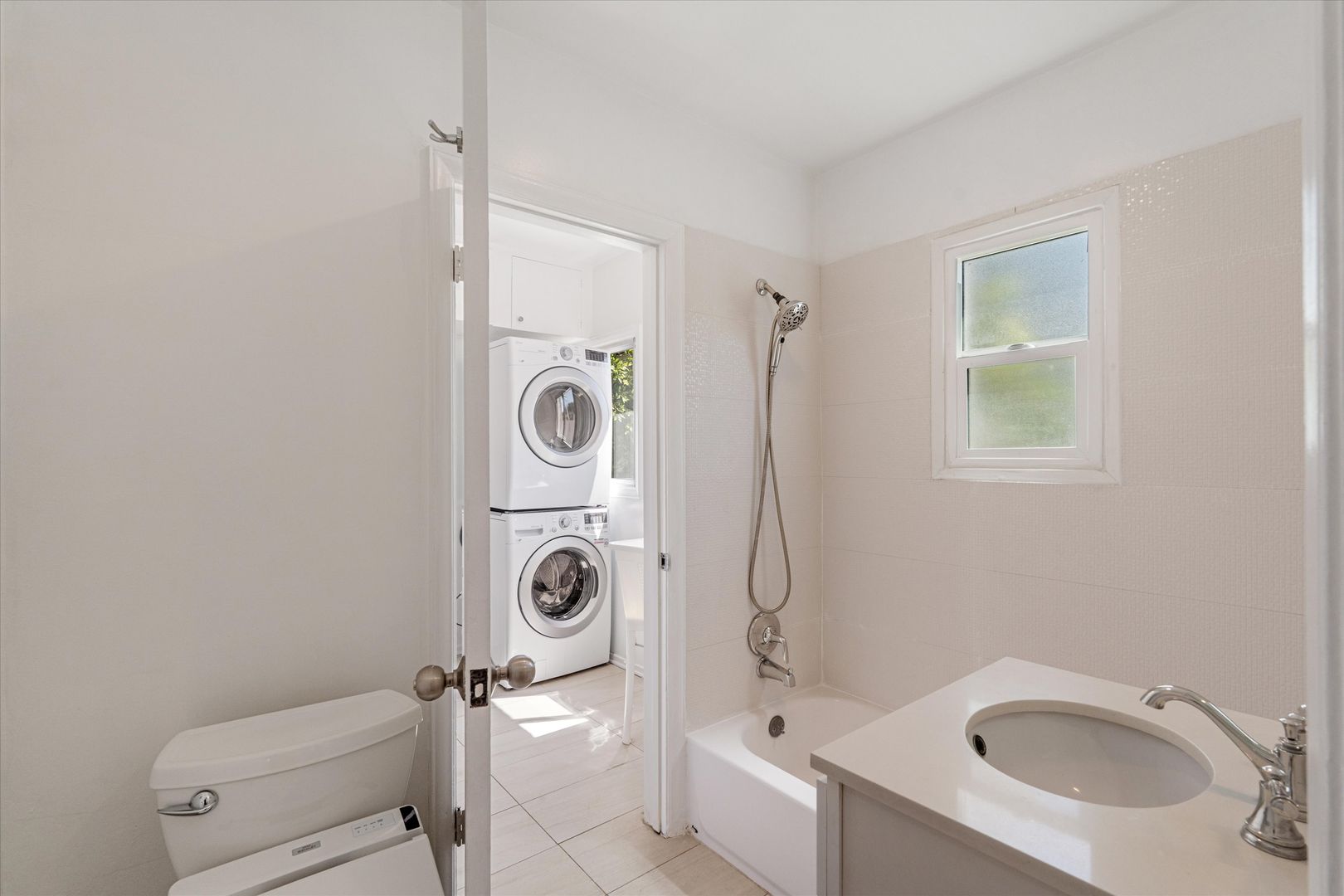 The downstairs includes one bedroom with a generous closet and a full bathroom with a tub. Upstairs, you’ll find two more bedrooms with amazing natural light and one with a unique loft-style second room perfect for an office or bonus sleeping area. A shared upstairs bathroom offers both a tub and shower.