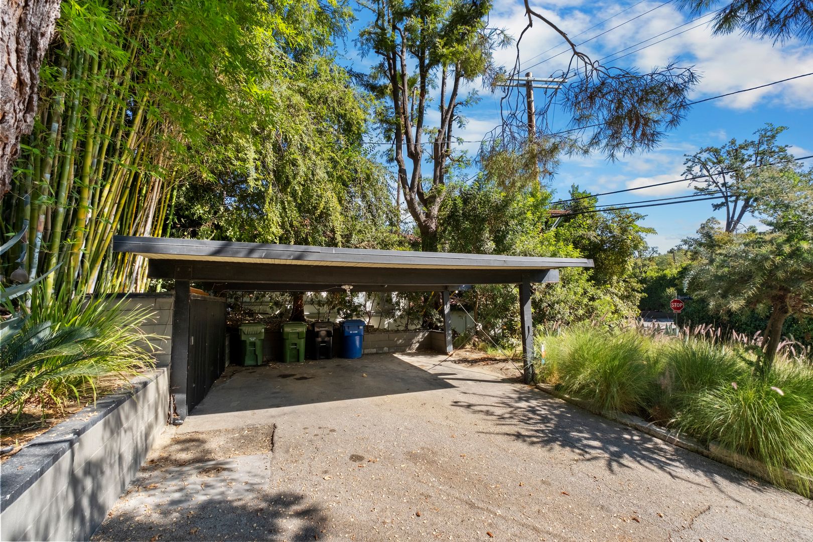 Includes a 2-car side-by-side carport with additional parking in the driveway. Landlord covers pool, gardener, and koi pond maintenance; tenant is responsible for all utilities.
